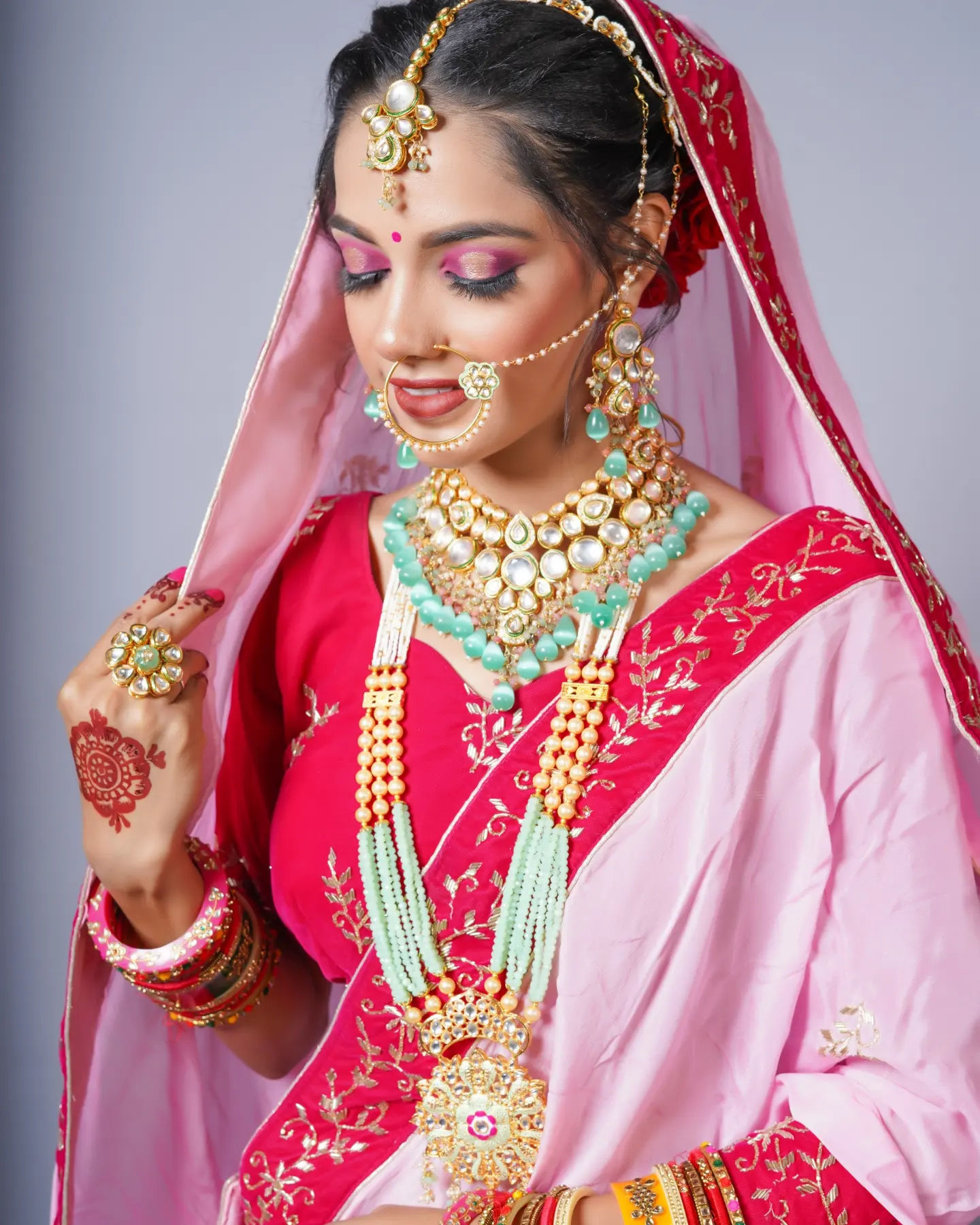 We are professional makeup artists. Bridal look is crafted by understanding the Bride’s skin type, texture and preference and we creates a look that is seamless and best suited for the occasion. When you look beautiful , you feel beautiful. Keeping in mind that all eyes are on the bride to be on her big day. We are known for the personal attention and the focus on the detailing for the perfect look of the bride. It will be our absolute pleasure to assist you in the best days of your life. Give us the privilege to for your Big day and we promise to make every moment special for you! # Bridal Makeup Artist , # bridal makeup , # wedding makeup, # Engagement Makeup , # wedding makeup artist , # bridal hair and makeup , # best bridal makeup