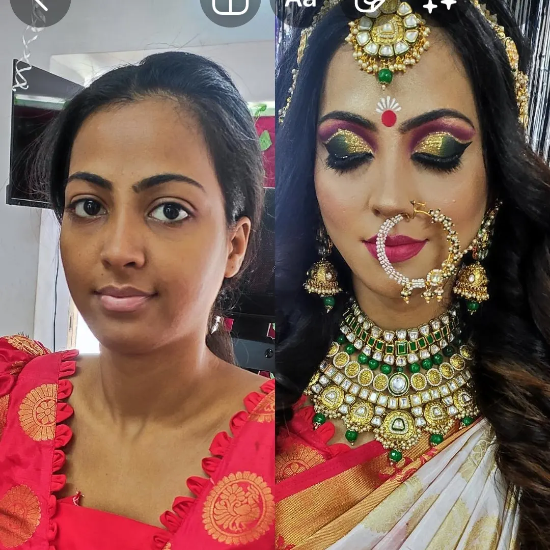 We are professional makeup artists. Bridal look is crafted by understanding the Bride’s skin type, texture and preference and we creates a look that is seamless and best suited for the occasion. When you look beautiful , you feel beautiful. Keeping in mind that all eyes are on the bride to be on her big day. We are known for the personal attention and the focus on the detailing for the perfect look of the bride. It will be our absolute pleasure to assist you in the best days of your life. Give us the privilege to for your Big day and we promise to make every moment special for you! # Bridal Makeup Artist , # bridal makeup , # wedding makeup, # Engagement Makeup , # wedding makeup artist , # bridal hair and makeup , # best bridal makeup