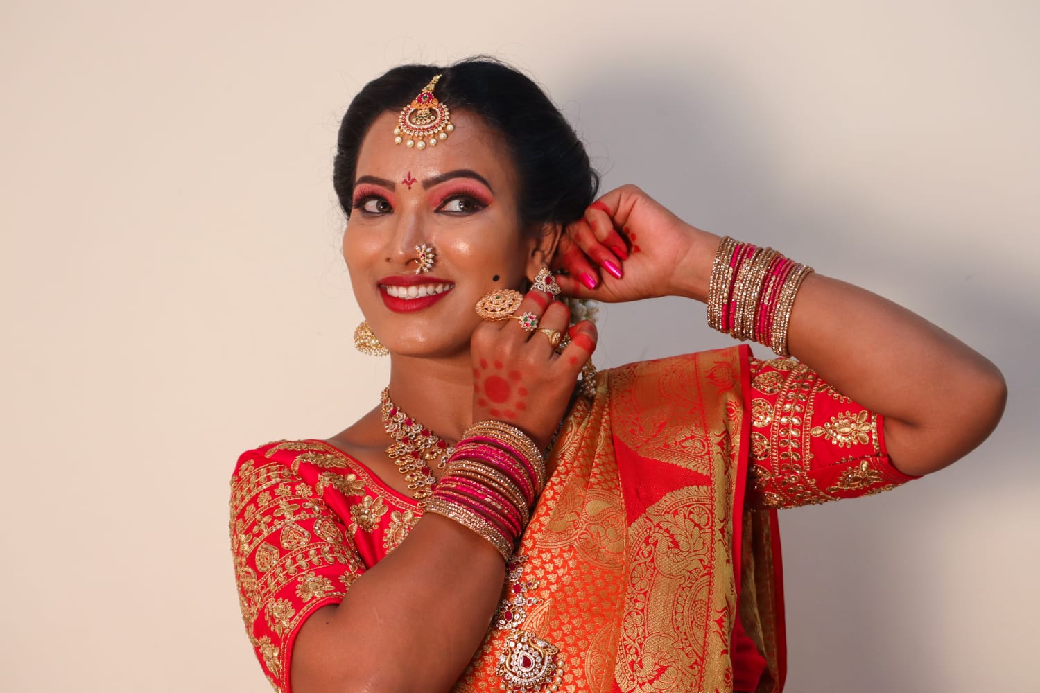 We are professional makeup artists. Bridal look is crafted by understanding the Bride’s skin type, texture and preference and we creates a look that is seamless and best suited for the occasion. When you look beautiful , you feel beautiful. Keeping in mind that all eyes are on the bride to be on her big day. We are known for the personal attention and the focus on the detailing for the perfect look of the bride. It will be our absolute pleasure to assist you in the best days of your life. Give us the privilege to for your Big day and we promise to make every moment special for you! # Bridal Makeup Artist , # bridal makeup , # wedding makeup, # Engagement Makeup , # wedding makeup artist , # bridal hair and makeup , # best bridal makeup