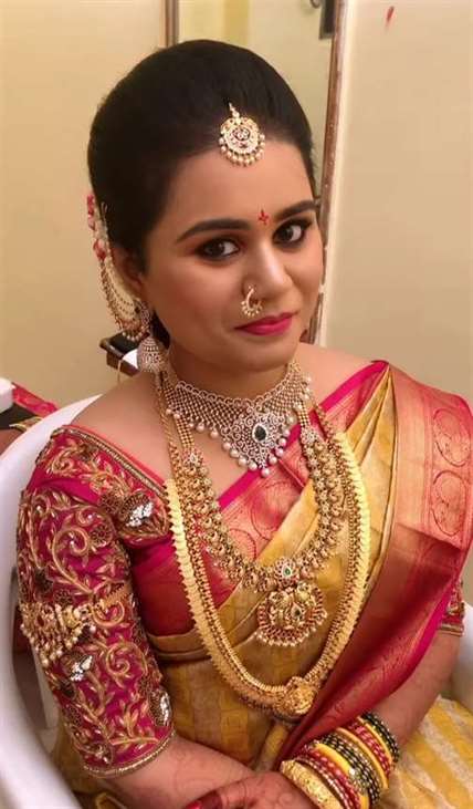 We are professional makeup artists. Bridal look is crafted by understanding the Bride’s skin type, texture and preference and we creates a look that is seamless and best suited for the occasion. When you look beautiful , you feel beautiful. Keeping in mind that all eyes are on the bride to be on her big day. We are known for the personal attention and the focus on the detailing for the perfect look of the bride. It will be our absolute pleasure to assist you in the best days of your life. Give us the privilege to for your Big day and we promise to make every moment special for you! # Bridal Makeup Artist , # bridal makeup , # wedding makeup, # Engagement Makeup , # wedding makeup artist , # bridal hair and makeup , # best bridal makeup