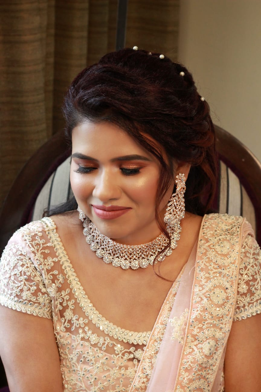 We are professional makeup artists. Bridal look is crafted by understanding the Bride’s skin type, texture and preference and we creates a look that is seamless and best suited for the occasion. When you look beautiful , you feel beautiful. Keeping in mind that all eyes are on the bride to be on her big day. We are known for the personal attention and the focus on the detailing for the perfect look of the bride. It will be our absolute pleasure to assist you in the best days of your life. Give us the privilege to for your Big day and we promise to make every moment special for you! #Bridal Makeup Artist , #bridal makeup , #wedding makeup, #Engagement Makeup , #Sangeet Makeup, #wedding makeup artist , # bridal hair and makeup , #best bridal makeup