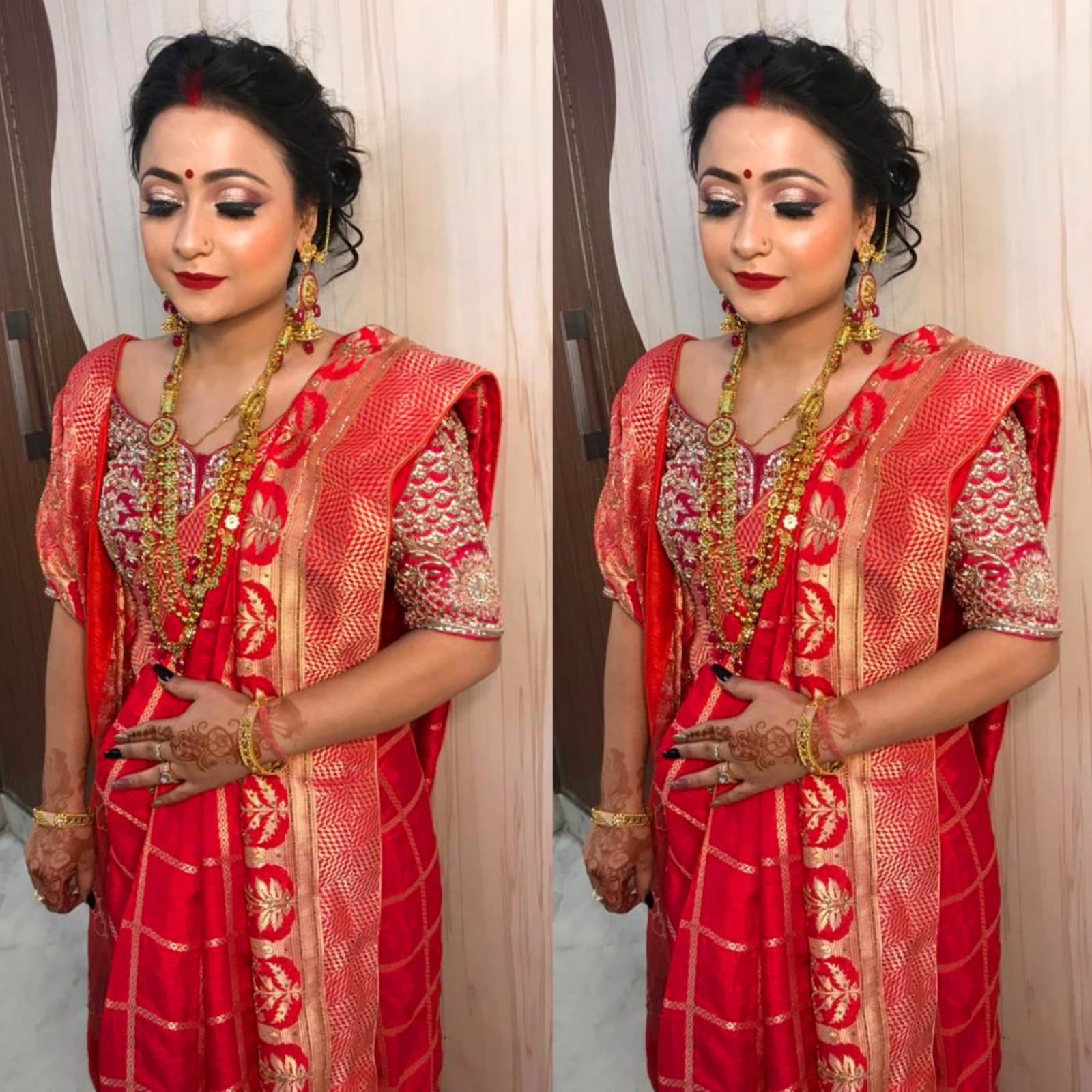 We are professional makeup artists. Bridal look is crafted by understanding the Bride’s skin type, texture and preference and we creates a look that is seamless and best suited for the occasion. When you look beautiful , you feel beautiful. Keeping in mind that all eyes are on the bride to be on her big day. We are known for the personal attention and the focus on the detailing for the perfect look of the bride. It will be our absolute pleasure to assist you in the best days of your life. Give us the privilege to for your Big day and we promise to make every moment special for you! # Bridal Makeup Artist , # bridal makeup , # wedding makeup, # Engagement Makeup , # wedding makeup artist , # bridal hair and makeup , # best bridal makeup